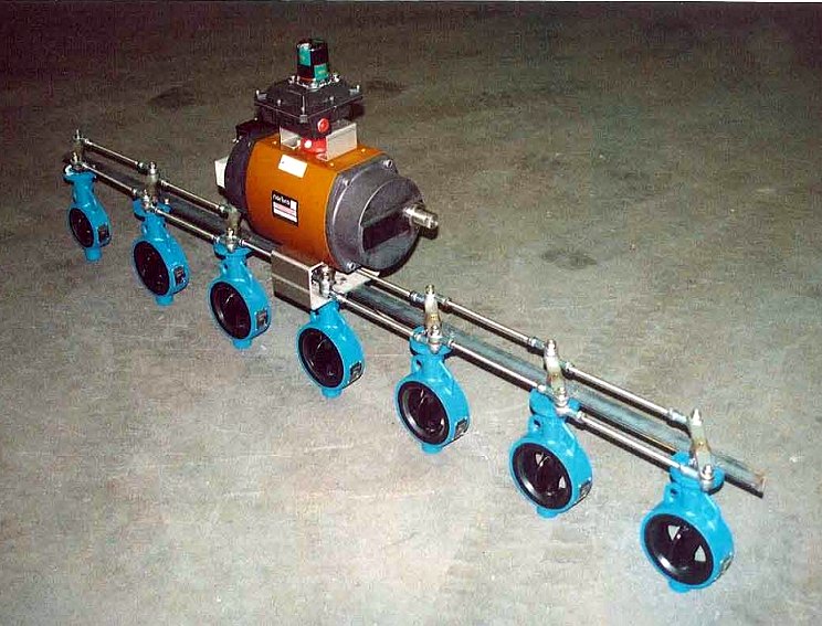 poniżej zestaw 7 przepustnic Serck Audco z napędem pneumatycznym Norbro.